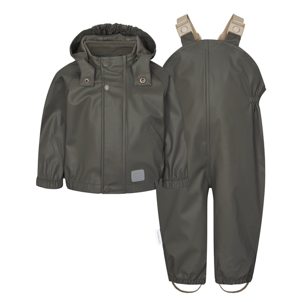 Get your little ones ready for a rainy day with Nori Green! This rainwear set includes adjustable suspenders and elastic waist on the pants, along with a front pocket and zipper/snap button closure on the jacket. Keep them dry while looking stylish.